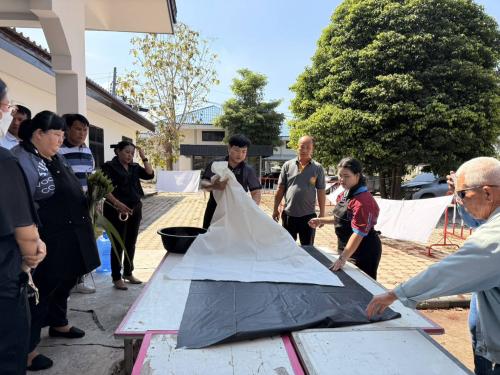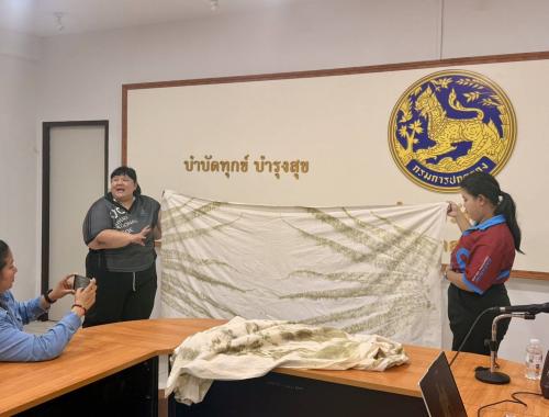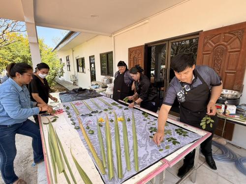 ภาคีเครือข่ายและผู้นำชุมชนในพื้นที่ตำบลวังม่วง จึงได้ต่อยอดเป็น โครงการยกระดับเศรษฐกิจฐานรากด้วยนวัตกรรม “ใบอ้อยสู่ผลิตภัณฑ์คาร์บอนต่ำ” เพื่อสนับสนุนนโยบาย Saraburi Sandbox อย่างเป็นรูปธรรม โดยนำใบอ้อยมาแปรรูปเป็น “ผ้า Eco Print และผลิตภัณฑ์ชุมชนเชิงสร้างสรรค์" โดยได้รับเกียรติจากวิทยากร อาจารย์วิทยาลัยอาชีวะศึกษาจังหวัดสระบุรี มาสอนเทคนิคการทำผ้า Eco Print จากใบอ้อย เพื่อสร้างมูลค่าเพิ่มจากวัสดุเหลือใช้ ลดการเผาในภาคเกษตรกรรม สร้างรายได้เสริมให้ครัวเรือน และสนับสนุนแนวคิดเศรษฐกิจหมุนเวียน อันเป็นมิตรต่อสิ่งแวดล้อม