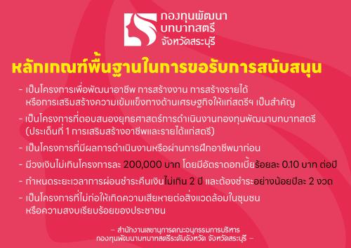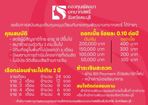 กองทุนพัฒนาบทบาทสตรีจังหวัดสระบุรี จัดทำสื่อประชาสัมพันธ์ "การขอรับการสนับสนุนเงินทุนหมุนเวียน" ของกองทุนพัฒนาบทบาทสตรี ประจำปีงบประมาณ พ.ศ. 2569