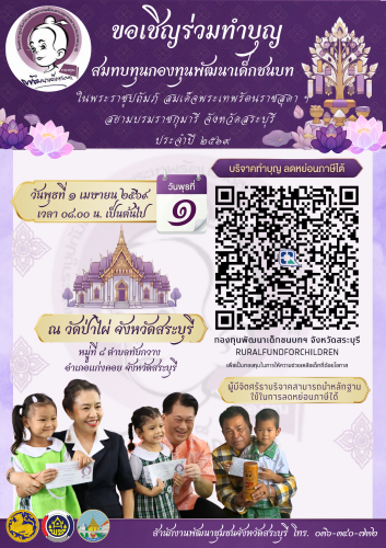 ขอเชิญร่วมกันทำบุญ ส่งต่อโอกาสให้เด็กชนบท