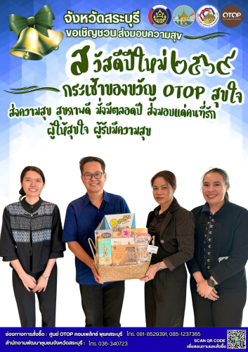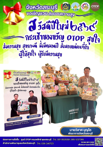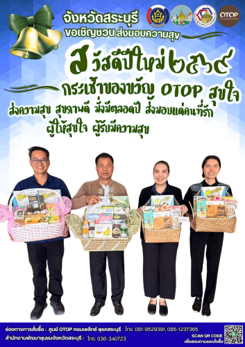 ทั้งนี้ การเลือกซื้อกระเช้าของขวัญ OTOP ไม่เพียงเป็นการส่งมอบความสุขให้แก่ผู้รับเท่านั้น แต่ยังเป็นการส่งต่อโอกาสให้ผู้ประกอบการในชุมชน เกิดการหมุนเวียนของรายได้ สร้างอาชีพ เสริมความเข้มแข็งให้เศรษฐกิจชุมชน และร่วมกันขับเคลื่อนเศรษฐกิจฐานรากของจังหวัดสระบุรีให้เติบโตอย่างมั่นคงและยั่งยืน