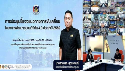 กรมการพัฒนาชุมชนจัดประชุมชี้แจงแนวทางการขับเคลื่อนโครงการพัฒนาชุมชนดิจิทัล 4.0 ประจำปีงบประมาณ พ.ศ. 2569 ณ ศูนย์ข้อมูลกลางเพื่อการตัดสินใจ (War Room) ชั้น 5 กรมการพัฒนาชุมชน และผ่านระบบการประชุมทางไกลผ่านจอภาพ (Video Conference) โดยมี นายสามารถ สุวรรณมณี รองอธิบดีกรมการพัฒนาชุมชน เป็นประธานกล่าวเปิดการประชุมฯ และมอบนโยบายการขับเคลื่อนงานด้านดิจิทัลของกรมการพัฒนาชุมชน เพื่อกำหนดทิศทางการดำเนินงานด้านเทคโนโลยีสารสนเทศให้เป็นไปในแนวทางเดียวกันทั่วประเทศ และสอดคล้องกับนโยบายรัฐบาลและยุทธศาสตร์การพัฒนาดิจิทัลของกรมการพัฒนาชุมชน