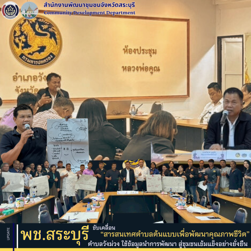สำนักงานพัฒนาชุมชนจังหวัดสระบุรี โดยกลุ่มงานสารสนเทศการพัฒนาชุมชน ดำเนินโครงการจัดทำสารสนเทศตำบลต้นแบบเพื่อพัฒนาคุณภาพชีวิต ประจำปีงบประมาณ พ.ศ. 2569 กิจกรรมที่ 1 ค้นหาศักยภาพตำบลและวิเคราะห์ข้อมูลชุมชน ภายใต้แนวคิด “ใช้ข้อมูลนำการพัฒนา” เพื่อยกระดับการวางแผนและการตัดสินใจเชิงพื้นที่อย่างแม่นยำ สอดคล้องกับยุทธศาสตร์ชาติ 20 ปี และแผนพัฒนาเศรษฐกิจและสังคมแห่งชาติ ฉบับที่ 13 ที่มุ่งสู่การเป็นรัฐบาลดิจิทัล