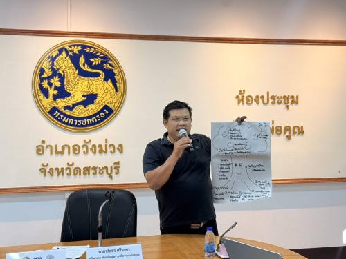 การดำเนินงานครั้งนี้เน้นการใช้ข้อมูลสารสนเทศเป็นกลไกสำคัญในการขับเคลื่อนการพัฒนาคุณภาพชีวิตประชาชน ผ่านการบูรณาการข้อมูลความจำเป็นพื้นฐาน (จปฐ.) ข้อมูลพื้นฐานระดับหมู่บ้าน (กชช. 2ค) ข้อมูลทุนชุมชน และข้อมูลเชิงพื้นที่อื่น ๆ เข้าสู่ระบบ Tambon Information System (TIS) เพื่อให้ชุมชนสามารถวิเคราะห์ศักยภาพ จุดแข็ง ปัญหา และความต้องการของพื้นที่ได้อย่างรอบด้าน นำไปสู่การออกแบบแผนงานและโครงการพัฒนาที่สอดคล้องกับบริบทจริงของตำบลวังม่วง นอกจากนี้ ได้จัดกิจกรรม “ต้นไม้พัฒนาคุณภาพชีวิต” เพื่อเปิดพื้นที่ให้ผู้เข้าร่วมได้ร่วมกันค้นหาศักยภาพ วิเคราะห์ปัญหา และจัดลำดับความสำคัญของประเด็นการพัฒนา พร้อมฝึกปฏิบัติการใช้ระบบ TIS ในการวิเคราะห์ข้อมูลชุมชนอย่างเป็นระบบ ส่งผลให้เกิดการเชื่อมโยงข้อมูลสู่การกำหนดโครงการและกิจกรรมที่ตอบโจทย์ปัญหาจริงในพื้นที่ ทั้งด้านเศรษฐกิจ สังคม สิ่งแวดล้อม และคุณภาพชีวิตของประชาชนอย่างเป็นรูปธรรม