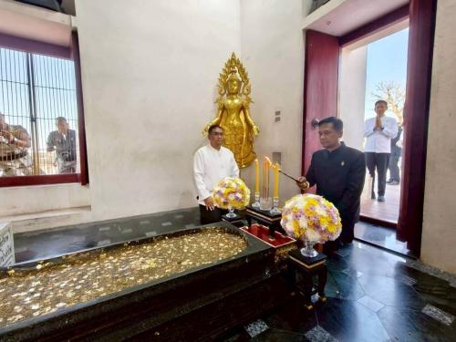 นายบัญชา เชาวรินทร์ ผู้ว่าราชการจังหวัดสระบุรี มอบหมายให้ นายดุรงค์ฤทธิ์ ศิริวัฒนพันธ์ รองผู้ว่าราชการจังหวัดสระบุรี เป็นประธานในพิธีสวดพระพุทธมนต์อุทิศถวายพระราชกุศลฯ และเป็นประธานในพิธีถวายผ้าพระพุทธฉาย ภายใต้กิจกรรม “เทศกาลแสงเทียนแห่งศรัทธา น้อมถวายผ้าพระพุทธฉาย” รวมถึงพิธีแห่ผ้าห่มมณฑปรอยพระพุทธบาทเบื้องขวา โดยมี พระราชวชิรมงคลวิสิฐ เจ้าคณะจังหวัดสระบุรี เจ้าอาวาสวัดมงคลชัยพัฒนา เป็นประธานฝ่ายสงฆ์ พร้อมด้วยหัวหน้าส่วนราชการ ข้าราชการ และพุทธศาสนิกชนเข้าร่วมพิธีฯ