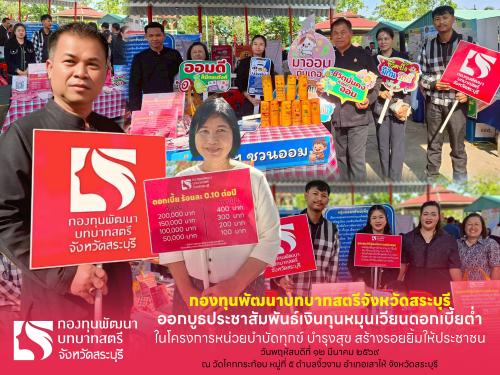 กองทุนพัฒนาบทบาทสตรีจังหวัดสระบุรี โดยนายวิลาศ บุญโต พัฒนาการจังหวัดสระบุรี พร้อมด้วยเจ้าหน้าที่พัฒนาชุมชน และพนักงานกองทุนพัฒนาบทบาทสตรี ร่วมออกบูธประชาสัมพันธ์การดำเนินงานกองทุนพัฒนาบทบาทสตรี ซึ่งเป็นแหล่งเงินทุนหมุนเวียนดอกเบี้ยต่ำ ในโครงการ “หน่วยบำบัดทุกข์ บำรุงสุข สร้างรอยยิ้มให้ประชาชน” ประจำเดือนมีนาคม พ.ศ. 2569 โดยมีกิจกรรม ดังนี้