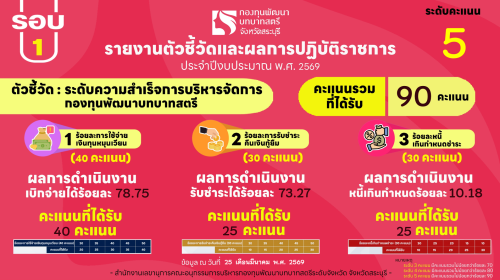 - การรายงานผลการดำเนินงานตามตัวชี้วัดการปฏิบัติราชการ ประจำปีงบประมาณ พ.ศ. 2569 : ระดับความสำเร็จการบริหารจัดการกองทุนพัฒนาบทบาทสตรี (รอบการประเมินที่ 1)