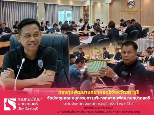 วันศุกร์ที่ 27 มีนาคม พ.ศ. 2569 เวลา 13.30 น. ณ ห้องประชุมสำนักงานพัฒนาชุมชนจังหวัดสระบุรี ชั้น 3 ศาลากลางจังหวัดสระบุรี ตำบลตะกุด อำเภอเมืองสระบุรี จังหวัดสระบุรี